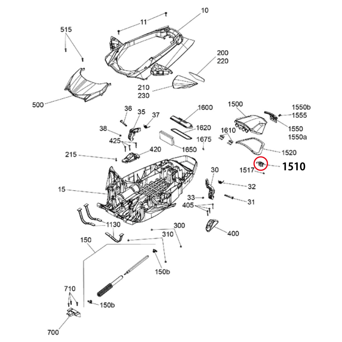 SEA-DOO用 グローブボックスラッチ ※使用箇所は、図解内の 1510番 になります。